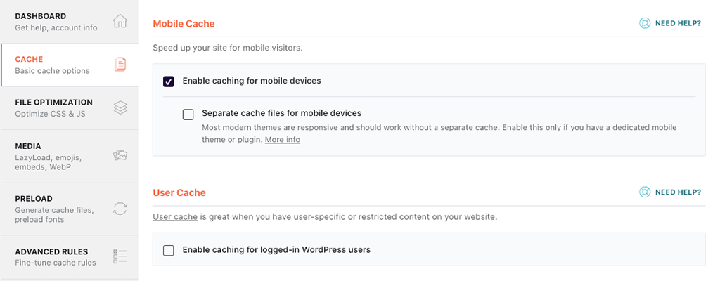 WP Rocket’s file optimization feature focuses on optimizing various files. This includes optimizing CSS, JavaScript, and HTML files to further improve loading times and reduce the number of server requests.