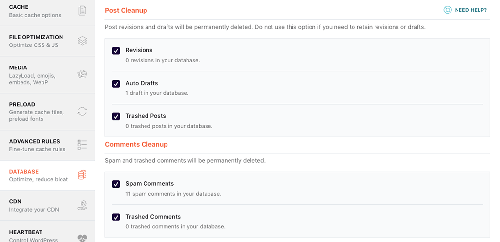 With WP Rocket’s database optimization feature, you can easily clean up and optimize your database, reducing its size and improving overall website performance.