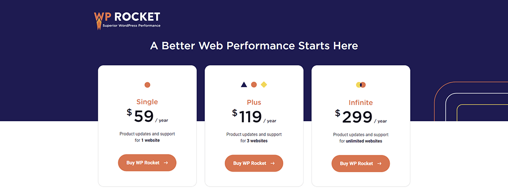 - Plus: The Plus plan costs $119 per year and allows you to use WP Rocket on up to three websites, making it an ideal choice for freelancers or small agencies.